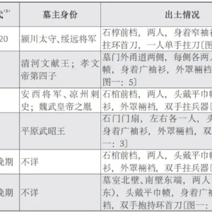 内容提要:本文讨论了5世纪末至6世纪晚期北朝墓葬中的两类形象——直閤与仪刀。它们以地面石刻、墓葬壁画、墓门及葬具装饰、陶俑等多种表现形式出现。二者的创作源于北朝的禁卫制度:直閤的原型是禁军的诸将军主帅,仪刀的原型则是主帅所领之武士。从现存的资料看,直閤与仪刀至少是北魏洛阳时代以及北齐的葬制内容之一。直閤一般成对出现,位置突出,且体 ...