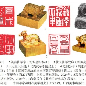 以印章随葬的历史,目前国内考古资料最早可上溯到商代晚期,两周墓葬亦不乏其例,如渭南澄城西周墓出土玉质龙钮图形印、苏州真山战国墓出土“上相邦鉨”铜印等。秦汉以降,墓葬随葬官印更为常见,赐葬官印屡见于文献记载。对三国两晋南北朝随葬官印的研究,除一些玺印论著中有所涉及外,叶其峰曾专门对随葬官印实物和文献记载进行了系统梳理,并将随葬官印 ...