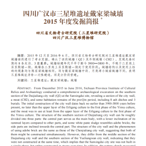 ▎考古中国四川省文物考古研究院(三星堆研究院)关键词:戴家梁城墙;三星堆遗址;先秦时期四川广汉市三星堆遗址戴家梁城墙2015年度发掘简报四川广汉三星堆博物馆关键词:三星堆遗址;戴家梁城墙;城壕四川广汉市三星堆遗址ⅡB2区2017年度发掘简报四川广汉三星堆博物馆关键词:三星堆遗址;ⅡB2区;先秦时期四川省文物考古研究院(三星堆研究院)摘要:20 ...