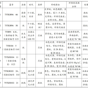 来源:《西域研究》2012年第1期吐鲁番阿斯塔那—哈拉和卓古墓群出土古纸研究李晓岑 郑渤秋 王博内容提要为研究新疆古代的纸和造纸工艺,本文采用外观观察和纤维分析等方法,鉴定了一批吐鲁番哈拉和卓古墓群出土的古纸,其年代处于东晋到唐代之间。分析表明,这些纸张的原料主要是苎麻、大麻和构皮,纸张的生产方法有浇纸法造纸和抄纸法造纸两种,加工方法 ...