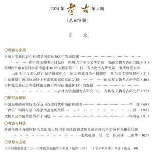 2024年《考古》第4期(总679期)目录●调查与发掘贵州贵安新区岩孔村招果洞遗址2020年发掘简报……贵州省文物考古研究所,四川大学考古文博学院,成都文物考古研究院(3)四川西昌市五星村李家湾遗址2017年发掘简报……四川省文物考古研究院,重庆师范大学,山地考古与文化遗产保护研究中心,凉山彝族自治州博物馆,西昌市文物管理所(21)山东曲阜市鲁国故城坊 ...
