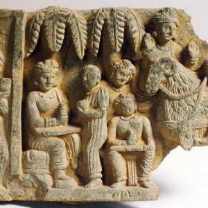 The young Siddhārtha Gautama going to school, relief from Marjanai; Peshawar, University Museum (MJN-1983-1-87). (Photo: after Drachenfels Luczanits 2008: no. 152; P. Oszvald © KAH Bonn and Pesh