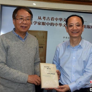 中国现代考古学2021年迎来诞生百年,这百年来,源远流长、博大精深的中华文明起源相关研究也一直备受海内外关注。国家文物局副局长顾玉才(右)和中国社会科学院学部委员、考古研究所所长陈星灿共同展示新书。中新社记者 孙自法 摄 俗话说:“内行看门道,外行看热闹”。考古学家眼中的中华文明起源有哪些“门道”?大众又该如何通过看“热闹”来认识 ...