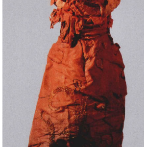 着衣彩绘木俑战国(楚国)高59.5厘米1982年湖北江陵马山出土湖北省荆州市博物馆藏马山出土彩绘木俑共4件,均用整木雕成,高矮、大小、体态、容貌、服饰等基本相近。木俑无手脚,身着单衣,下裳,腰间用丝线束缝。耳、鼻、嘴雕出,头顶、鬓角、眉、眼墨绘,双唇朱绘。《长江流域古代美术(史前至东汉)漆木器》转载自《中国文明起源研究要览》文物出版社2003 ...