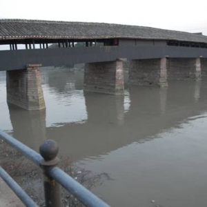 百梁桥位于海曙区洞桥镇蕙江村,2005年3月16号公布为第五批省级文物保护单位。 百梁桥是一座廊屋式石墩木梁桥,它建筑科学,结构牢固。全桥六墩七孔,长77.4米,宽8米。桥墩由长方形巨石叠成,平面前后长7.8米、左右宽1.7米,砌合平整;桥梁由粗大的杉木等拼排而成,口径达40-50厘米,每排17-18根不等,组成桥梁整体骨架;桥面是由5厘米厚的栗木板铺设,设 ...