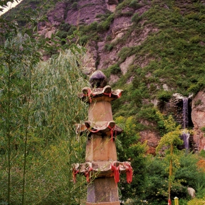 南禅寺塔 : 南禅寺塔。明代建造,位于延长县交口镇董家河村,通高2.3米, 塔身保存完整。 Nanchan Temple Pagoda The Nanchan Temple Pagoda was built in Ming Dynasty. Located in the Dongjiehe Village,Jiaokou Town of Yanchang County,the height is 2.3 meters; the preservation of body of Pagoda keeps we