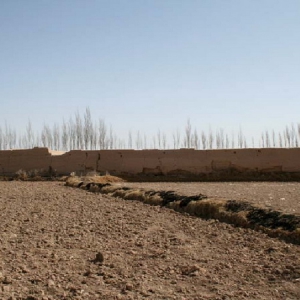 喀孜那克寺庙遗址 : 位于于田县希吾勒乡境内,东距县城20多公里,北距羊场场部5公里。据考证初步断定为魏晋时期的佛教寺庙。佛寺坐北朝南,遗址长11米,宽8.4米,现存残墙高0.6米。佛寺分内外二室,断垣平面呈“回”字形,外室靠墙有数个莲花座,内室有四方形高台佛座,墙上有壁画残迹,用单线平涂手法绘成。出土文物有壁画、佛像、钱币等,其中8个小佛像高约0.5米,神 ...