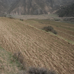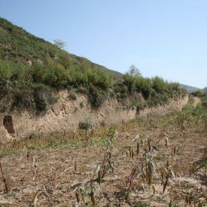 平道地遗址全景 平道地遗址灰坑 平道地遗址采集标本 平道地遗址位于天水市甘谷县白家湾乡梁家庄,遗址北至大坟区,南至华沟,东起小沙沟,西至平道地,南北长约350米,东西宽约250米,面积约8.75万平方米,文化层厚约1米,地表暴露灰坑等,采集的标本有马家窑类型的旋纹红陶片、齐家文化的绳纹夹砂灰陶片等。
