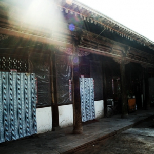 秦氏民居院墙 秦氏民居内院 秦氏民居内院 秦氏民居位于武威市凉州区金羊镇海藏村七组。该建筑坐北向南,南北长约96米,东西宽约80米,占地面积约7680平方米。庄墙高约12米。前后筑墩,辟南门,分内院和外院,内院为四合院布局。北为堂屋,二层楼,面阔五间,进深一间,硬山顶,前出廊;东西厢房各五间,硬山顶,前出廊;倒座面阔三间,进深一 ...