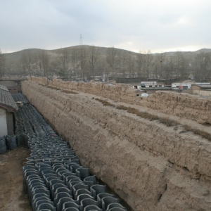 鸡川寨遗址全貌 鸡川寨遗址北墙与壕沟 鸡川寨城址三道壕沟 位于甘肃省定西市通渭县鸡川镇许家堡村李家坪社南100米,显清河西岸第二台地。北临李家坪,南为牛家店,东临陈家河,西靠陡湾山,依山而建.呈不规五边形,周长1660米,东西宽约620米,南北最长约380米,最窄150米,占地面积142700平方米。寨墙夯筑基宽6.5-7米,顶宽4米,残高6米, ...