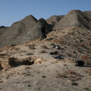 窠立台遗址全貌 窠立台遗址采集的标本 窠立台遗址位于白银市会宁县头寨子镇坪岔村窠立台社。遗址呈不规则状,分布面积50万平方米,散见彩陶及素陶残片。20世纪70年代,该遗址曾出土葫芦柳叶纹彩陶罐等物,属马家窑文化半山类型。