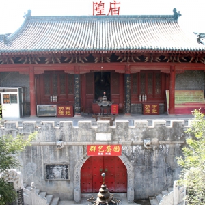 平凉隍庙 平凉隍庙局部 位于平凉市崆峒区东南隍庙巷。始建于明,清光绪二十九年(1903)补修。隍庙其余建筑已毁,寝宫位于隍庙建筑群中轴线的北端,座北向南,歇山顶,面阔五间,进深三间,建筑面积约166.17平方米。保存较好,对研究明清建筑史和技术有重要价值。