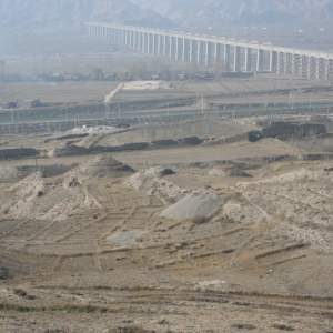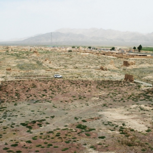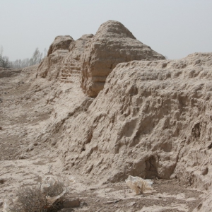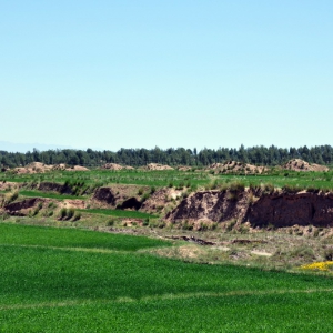 王什墓群远景 王什墓群近景 王什墓群局部 位于民乐县新天乡大王庄村西北1公里。面积约40万平方米。南北向分布圆丘形封土堆50余座,高0.5--5米。断崖上暴露有穹窿顶砖室墓。地表散见子母砖。墓群东有砖窑址,残砖与墓砖相似。墓葬保存较好,对甘肃汉代考古和河西汉代史研究有重要价值。