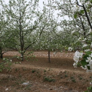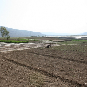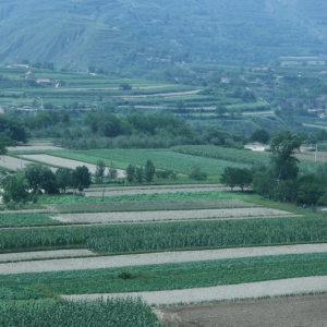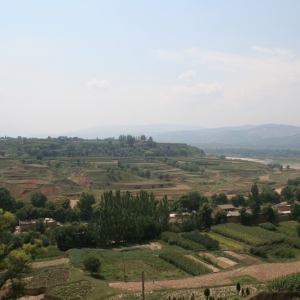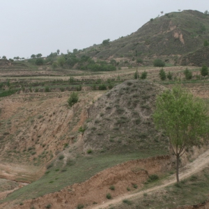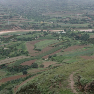 麻家暖泉遗址远景 麻家暖泉遗址局部 麻家暖泉遗址采集标本 位于庆城县庆城镇暖泉村西北500米。属仰韶文化庙底沟类型。面积约5万平方米,文化层厚1--3米,暴露有灰坑。采集有泥质红陶黑彩敛口钵、绳纹双耳鼓腹尖底瓶、素面敞口折腹罐及夹砂红陶绳纹、附加堆纹罐等残片。遗址保存较好,对研究仰韶文化的分布、发展有重要价值。