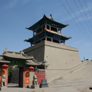 二分大庙双楼北楼正面 二分大庙双楼背面 二分大庙双楼南楼内顶架构 位于民勤县双茨科乡二分村南350米。始建于乾隆二十九年(1764),嘉庆十二年(1807)重修,现存山门和两侧钟鼓楼,建筑总面积480平方米。山门面阔三间9米,进深二间5.2米,五檩单檐歇山顶。钟鼓楼均高15米,俗称“姐妹楼”,为木结构,平面呈方形,面阔7.1米,进深7.3米,二层, ...