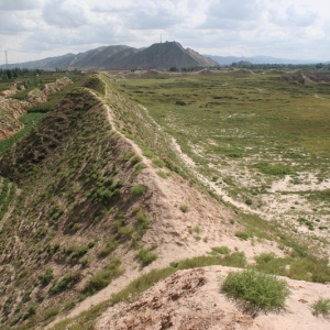 古浪三角城遗址全景 古浪三角城遗址东侧文化层 古浪三角城遗址采集标本 位于古浪县民权乡长岭村西200米。是一座土筑古城。城平面呈三角形,故俗称三角城。墙体多塌毁,墙体边长分别为340、330、200米,墙体夯土版筑,残高1--3.5米,基宽5米。夯层厚约0.15米。东面开一门。地表散见有大量残砖、瓦当及绳纹、水波纹灰陶片。城址保存较好,对研 ...