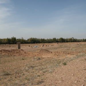 双墩滩墓群 双墩滩墓群封土堆 双墩滩墓群出土画像砖 位于张掖市小河乡东五村北1公里。是一处汉晋墓群。面积约30万平方米。地表现存圆丘形或覆斗式封土堆12座。曾暴露有砖室墓2座,采集有釉陶耳杯、灰陶罐以及狩猎画像砖等。地表散见灰陶片及砖块。墓葬保存较好,对我省汉代考古和河西汉代史的研究有重要价值。