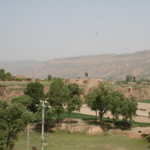 程家川遗址全景 程家川遗址中心点 程家川遗址采集标本 位于合水县吉岘乡程家川村西北。属仰韶文化庙底沟类型。面积约11万平方米,文化层厚1--1.5米。采集有黑彩变体鱼纹泥质红陶钵、重唇口尖底瓶,夹砂红陶绳纹罐等器物残片。遗址保存较好,对研究仰韶文化的分布与内涵有重要价值。