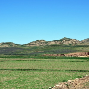 山羊堡滩墓群全貌 山羊堡滩墓群封土堆 位于山丹县东乐乡西屯村南1公里。面积约750万平方米。可见封土堆200余座,排列不规则,底径1--20、高1--6米。地表散布有灰陶罐和子母砖等。墓葬保存较好,对甘肃汉代考古和河西汉代史的研究有重要价值。