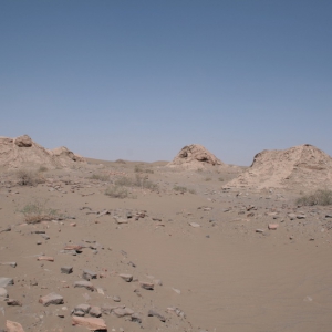 乱古堆墓群远景 乱古堆墓群局部 乱古堆墓群墓砖 位于酒泉市金佛寺镇红寺村东北2公里。是一处汉代与晋代墓葬共存的大型墓地。面积约40万平方米。地表可见砾石垒筑的封土堆200多座,平面呈圆形和方形,曾暴露有砖室墓,出土有灰陶仓等。地表散见残砖、灰陶片。墓葬保存较好,对甘肃汉晋考古和河西汉晋史研究有重要价值。