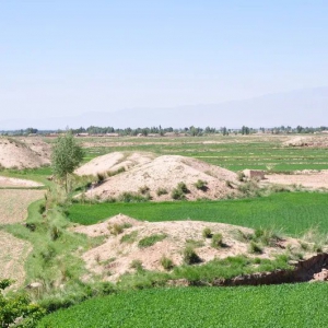 旧南干渠北石滩墓群远景 旧南干渠北石滩墓群近景 旧南干渠北石滩墓群墓砖 位于酒泉市总寨镇单长村西南2公里。面积约30万平方米。地面有石块堆筑覆斗形和圆丘形封土堆10余座及长墓道。墓葬分布密集,散见少量残青砖。墓葬保存较好,对甘肃两晋考古和两晋史的研究有重要价值。