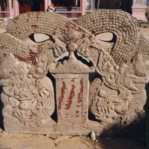 王仁裕神道碑全景 1268T00006-00018王仁裕神道碑刻纹 王仁裕神道碑碑首(正面)刻文拓片 位于礼县石桥乡斩龙村。墓已毁,神道碑且存,并出土墓志铭一方。王仁裕(880--956),字德辇,秦州西南(今礼县境内)人,五代时期著名学者,以文辞知名,入蜀为翰林学士。《新五代史》有传。碑为砂石质,通高3.05米,首高0.8、宽1.25、厚0.43米,上凸雕六龙 ...