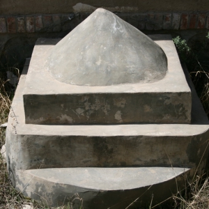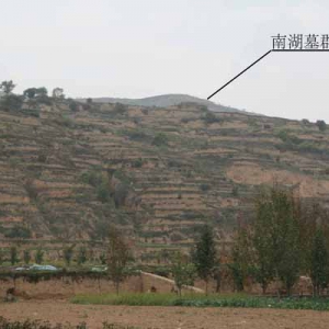 石阳墓群远景 石阳墓群近景 石阳墓群采集墓砖 位于庄浪县南湖镇高房村北800米。汉代。面积约2万平方米。发现圆丘形土堆6座,高4—7米,底径9—17米,底边周长8—25米,封土为夯土堆筑,夯层厚0.08—0.1米,地表暴露砖室墓1座,为券顶子母砖室墓,早期被盗,仅出土少量灰陶明器。