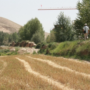 王景寨城址保护标志 王景寨城址 王景寨城址采集标本 位于武威市凉州区东河乡王景寨村东100米。是一座土筑古城。城平面呈长方形,东西长250、南北宽150米,面积37500平方米。仅西面隐约有残垣遗迹。采集遗物有绳纹灰陶片、残砖瓦和石器,出土有有石磨盘、石碾子、铜镞、五铢钱币等。五坝山3号汉墓木牍记:“张掖西乡定武里田升宁,今归黄泉hel ...