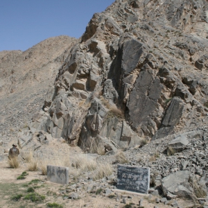 鸡心梁岩画 : 位于木垒县东城乡鸡心梁村,北部距乡政府9公里。鸡心梁是个牧业村,有优良的夏季草场,这里海拔1 660米,草深林藏,温暖宜人。岩画有两组,阴刻在两块相距近千米的岩石上,画面都是以螺纹形和十字形图案为主,一组刻着螺云纹、山羊头形等印迹9个,另有8个十字符号;一组由5个字符号开始,接着间杂有螺云纹、三角形、十字形图案。尚不清楚两组画面之间的 ...