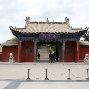 雷台观山门 雷台观雷祖殿 雷台观三星殿 位于武威市凉州区金羊乡新鲜村内。建在高8.5米、南北长108、东西宽60米的夯筑土台上,台始建年代不详。明代在台上始建雷台观,现存建筑雷祖殿、配殿、三星殿等,为民国二十二年(1933)重建,1981年对台上建筑进行大规模加固维修,并搬迁城内火神庙大殿前卷棚为雷祖殿过殿。雷祖殿为土木结构重檐歇山顶式 ...