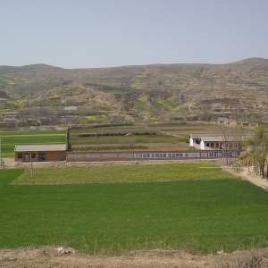 东关遗址全景 东关遗址中心区 东关遗址采集标本 位于合水县太白乡东100米。属仰韶文化庙底沟类型。面积约8万平方米,文化层厚1--1.5米。采集有彩陶盆、钵,泥质红陶盆、罐、钵、重唇口尖底瓶、夹砂红陶绳纹罐等器物残片。彩陶施黑彩,纹样有宽带纹、变形鱼纹、变形叶纹等。遗址保存较好,对研究甘肃东部地区仰韶文化的发展有重要价值。