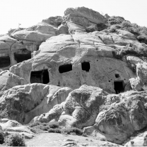 阿尤沟口墓群 : 位于新源县则克台镇西约6公里的阿尤沟口。东经83°12′24″,北纬43°32′29″。在巩乃斯河北岸,河吾拉勒山南麓阿尤沟口东西约2公里,南北1.5公里的山坡地段约有土墩墓110座。封堆皆为圆丘形数个或十多个为一组,呈南北方向排列。其中,高约2~4米,直径20~30米的大型封堆13座,有的顶部塌陷;其他的墓葬高度0.5~1.5米,直径7~20米,部分封堆表面 ...