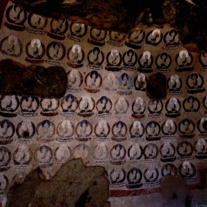 莫高窟第314窟 隋此窟开凿于隋代,窟型是莫高窟比较常见的覆斗顶殿堂式洞窟。 窟顶 莲花缠枝纹藻井此窟的藻井正中是一朵盛开的莲花,在莲花的四个边角各画有一身化生童子,他们均手持莲花,端坐于莲座之上。这里画家以细密的线描和重彩涂绘的方法,表现了莲花的美和童子可爱的神态。虽然色彩有点变暗,呈现给我们的却是一种古朴,典雅的色调。 ...