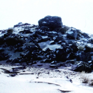 石板墩烽燧 : 位于巴里坤哈萨克自治县三塘湖村东南31.5公里,东经93°38′36″,北纬44°4′6″,海拔1 275米。烽燧坐落在一条简易公路南侧的山顶上,内外分筑,从其不同的建筑形式看,为唐代遗存,清代又加以增补利用。烽燧为不规则八边形,残高约6.7米,基座用片石筑成,周长26米,内部以土坯错缝平筑,夹筑木棍等,外部用片石围砌,厚约1米。