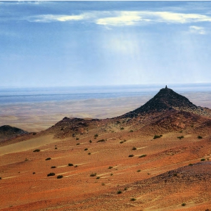 库鲁克山南麓古烽燧 : 位于尉犁县城西北约60公里的—剥蚀土丘上,烽墩约4平方米,残高3米左右,用土坯叠砌。在烽墩周围有大量红陶片和烽渣存在。