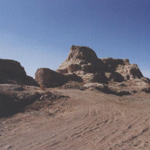 阿萨协亥尔烽燧遗址 : 位于鄯善县达浪坎乡拜什塔木村西南约10公里,东经89°37′18″,北纬42°35′39″,海拔-138米。“阿萨”,波斯语,意为城堡;“协亥尔”,维吾尔语,意为“城市”。该遗址面积较大,约5 400平方米,均为土坯建筑,略呈长方形。西墙约57米,南墙约95米,周长约304米,墙均已倒塌。紧靠南墙中段为烽火台,实体建筑,顶部南北长15米,东西宽约11米,残高5 ...