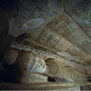 莫高窟第158窟 中唐涅槃窟内景 建于中唐,甬道北壁有供养人画像题记“大蕃管内三学法师持钵僧宜”字样,“大蕃”即吐蕃,由“大蕃管内”而得知此窟开凿于吐蕃统治敦煌时期。此窟是这一时期的代表窟。唐德宗建中二年(781年),在孤立于援的情况下坚持抗蕃斗争长达十年的沙州被迫立城下之盟,而后敦煌易帜,自此河西走廊全部为吐蕃控制。 此窟是 ...