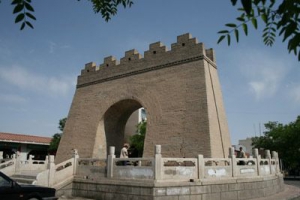 酒泉古城门为甘肃省文物保护单位。酒泉古城门 位于酒泉肃州区仓后街。《重修肃州新志·城池》载:“福禄城,谢艾所筑。”唐永徽年间由肃州刺史王方翼主持修葺,此城门在明洪武二十八年(1395)展筑东城而重开城门时包在新城墙中。1964年发现于清代城墙内。残券门高6.7米,宽9.75米。门洞宽4.2米,深3.35米,高4.8米,两侧门墩各宽2.8米,残高6.7米,青砖平砌 ...
