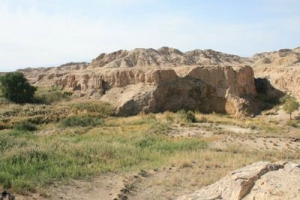阿萨墩戍堡烽燧,在夏乡东南艾丁湖边缘的沙砾上。