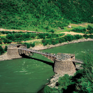 Ⅲ-423.波日桥.清.四川省新龙县.古建筑..第六批波日桥堪称桥梁史上的奇迹,被誉为“康巴第一桥”,位于甘孜藏族自治州新龙县乐安乡境内,横跨雅砻江,气势雄伟、壮观。波日桥始建于清朝,由杰出的藏族建筑大师唐通吉布承担设计,他指挥工人在峡谷深涧、江水湍急的雅砻江上风餐露宿几个月才完成。从侧面看,波日桥有着粗犷的圆弧桥墩,整齐美观的桥台,木 ...