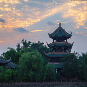 Ⅲ-420.望江楼古建筑群.清.四川省成都市.古建筑..第六批【崇丽阁】它是成都历史文化名城的标志性建筑,因其临江而建,所以民间称其为望江楼,该楼修建于光绪十五年(1889年),取晋代大文学家左思《蜀都赋》中“既丽且崇,实号成都”中“崇丽”二字,以称赞望江楼宏伟美丽。全楼总高27.9米,为全木穿榫结构,朱柱彩绘,碧瓦黄脊,翼角凌空,鎏金宝顶,屹 ...