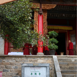 Ⅲ-453.龙华寺.明至清.云南省姚安县.古建筑..第六批龙华寺 明至清 姚安县光禄镇西山麓,始建于后唐天祐年间,蒙诏世隆时期,康熙五十七年(1717年)火毁,土司高映厚及住持和尚寂空重修。光绪二十年(1894年)火毁再建。两次火毁都未涉及大悲殿(圆通楼)及后轩,仍为明代建筑。砖雕遍布建筑的各个部位,为省内其他的建筑所罕见。大殿采用硬山顶 ...