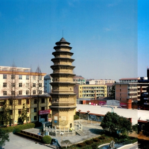 千佛铁塔,位于陕西省咸阳市之北杜镇。塔身有铭文:“大明万历十八年(公元1590年)南书房行走太监杜茂铸造”。千佛铁塔,由纯铁铸成、平面方形,十层,高33米,边宽3米,层层有窗,门南向,中空有梯可攀登。四角柱铸成金刚力士像,顶立层楼,各层环周铸铁佛多尊,故名“千佛塔”,佛像间还夹杂奇花异草、珍禽怪兽,更显得工艺超群,精巧绝伦。千佛铁塔, ...