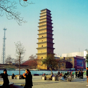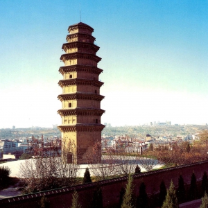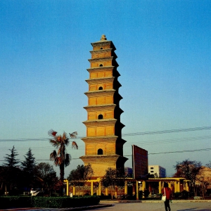 陕西省第二批重点文物保护单位。位于咸阳城西25公里处兴平市东城街道办事处北寺巷。原为清梵寺内建筑,塔建于唐贞观元年(公元627年),塔随寺名,初称清梵寺塔。梵清寺宋代改称保宁寺,塔亦遂称保宁寺塔。北塔为七层八棱砖塔,底部每边长4.35米,高38.6米。各层每角都有砖柱,第二、三层还有砖砌转角和斗拱,每层南北两面有门。北塔曾多次修葺,现塔身略 ...