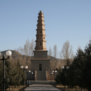 肖金塔位于庆阳市西峰区肖金镇街道中心,建于宋徽宗政和八年(1118年)。 肖金塔为八角七级仿木构楼阁式砖塔,原为七层,高30.18米,现存六层,高21.75米。由塔基、塔身和塔刹三部分组成。塔身每面有砖制仿木斗栱、上承叠涩出檐,檐口做出飞檐、滴水,无瓦件盖顶,檐上施平座和栏杆。塔身各层有门或雕刻板门与直棂窗。塔体檐角以细白砂石雕成飞天和龙头 ...