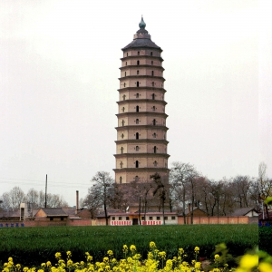 崇文塔,位于陕西省西咸新区泾河新城崇文塔景区内,巍然矗立于泾河北岸,建于明代万历十九年(1591年),由泾阳人尚书李世达倡导主持,南京镇江工匠官施工所建,是中国最高砖塔。崇文塔属楼阁式砖塔,平面呈八角形,共十三层,总高度87.218米,根据八卦悬顶的古建筑原理设计,从塔下至塔顶全部用青砖修建。崇文塔为全国保存最好的砖塔之一。崇文塔历史久远 ...
