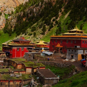 格萨尔三十大将军灵塔和达那寺,位于青海省囊谦县吉曲、尕水、吉尼赛三乡交界达那山腰。始建年代不详,原为苯教寺院,均在南宋时期改奉叶巴噶举派。现存石木结构的经堂一座,高22米,占地44平方米,二层,藏平顶式帕摩竹巴灵塔殿一座及叶巴殿、僧舍等建筑。经常内供奉一尊高约9米的格萨尔和其部将吉本和贾察塑像,还有传为格萨尔的毡帽、盾、头盔、铠甲等 ...