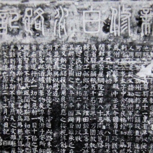 Ⅳ-61.《新修白水路记》摩崖.宋.甘肃省徽县.石窟寺及石刻..第六批新修白水路记碑,位于甘肃徽县大河店乡瓦泉村白水峡,徽(县)白(水江)公路(即白水路)左侧石崖之上,距地面高7米,碑通高2.83米,宽1.83米,碑面凹进石崖0.25米,拱顶额篆新修白水路记为书法家雷简夫斗书,碑文颜体正楷,右起竖写26行,每行37字,撰书于北宋嘉祐二年(1057)。2006年5月 ...