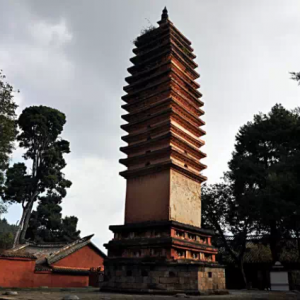 弘圣寺塔位于大理中和镇弘圣寺旧址,寺毁于明初。塔通高43.87米,16级方形密檐式空心砖塔,塔身下部为块石砌成。全塔分为基座、塔身、塔刹3部分,塔身各层之间用砖砌出叠涩檐,其上逐层收分。