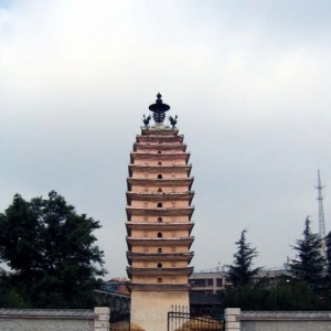 东寺塔系四方形十三层密檐式空心砖塔,高40.57米,底层南面辟门,从第二层起檐上四面均开有券洞,每洞内置石雕佛像1尊。塔的顶宝上立有4只铜铸金翅鸟,故又称金鸡塔。与西寺塔东西遥相对峙。 西寺塔现塔通高35.54米,塔形与大理崇圣寺塔主塔相似,为四方形、十三层密檐式空心砖塔。砖上有汉文、梵文经咒和窑户印模。虽经历代较大修葺,仍不失原有形制。东寺塔,在昆 ...